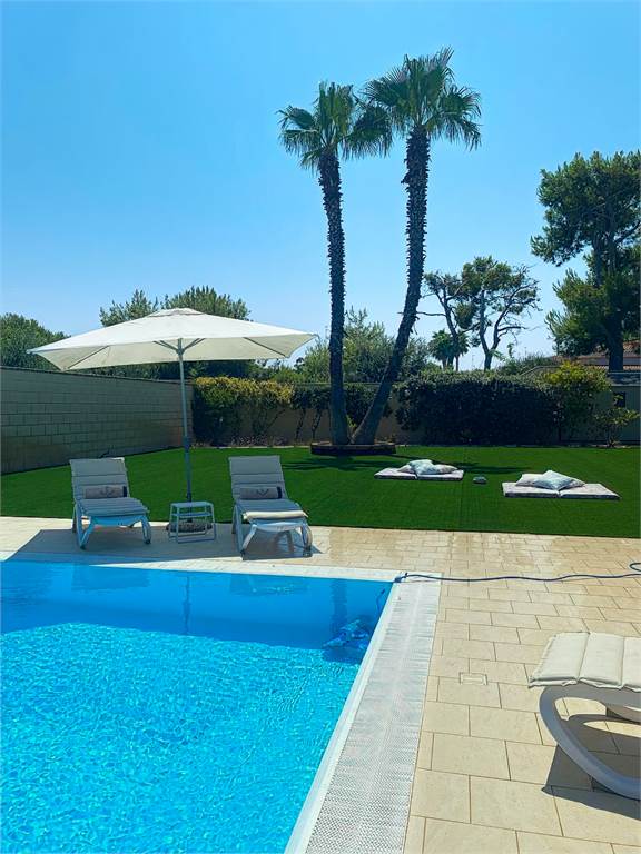 • La Piscina: Uno specchio d’acqua cristallina incastonato nel verde, che dialoga costantemente con l’azzurro del mare a pochi passi, creando un gioco di riflessi senza fine.